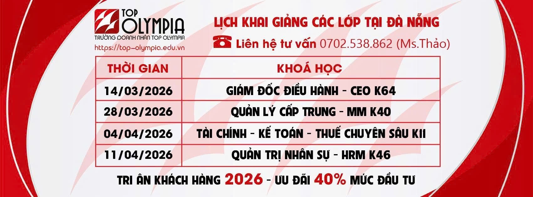 Top Olympia trân trọng dành ưu đãi lên đến 40% học phí cho