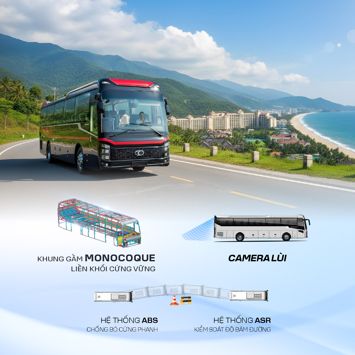 - An tâm trên mọi cung đường: Khung xương Monocoque liền khối đạt chuẩn Châu Âu kết hợp