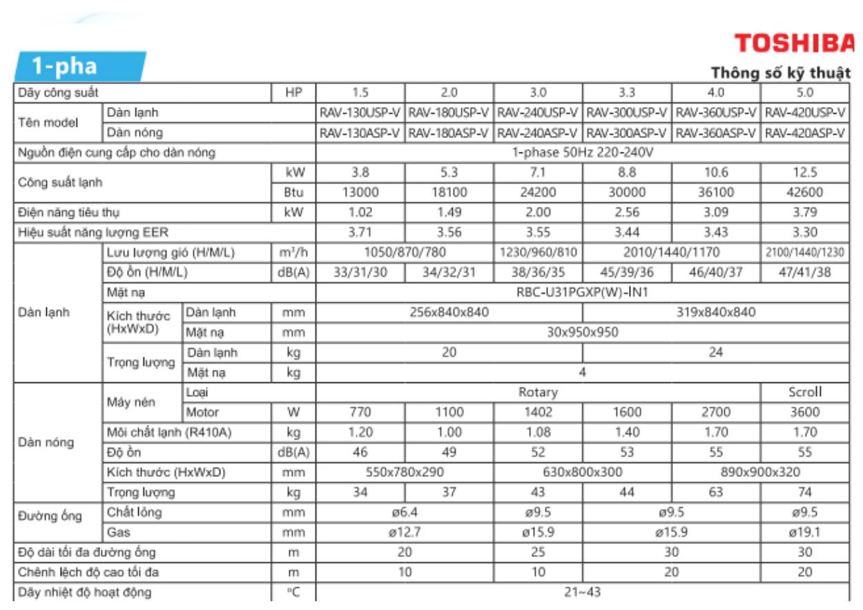 Máy lạnh âm trần Toshiba RAV-360USP công suất 4.0hp