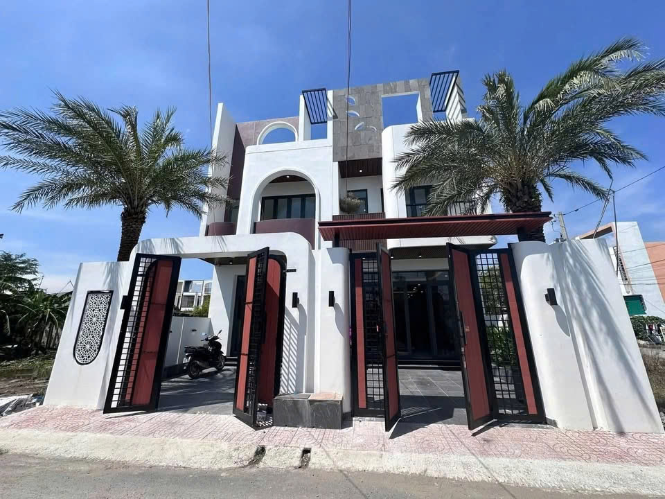 nhà xây kiêng cố hiện đại với 3pn, 2wc, sân xe hơi, phòng khách, phòng bếp, có không gian thờ