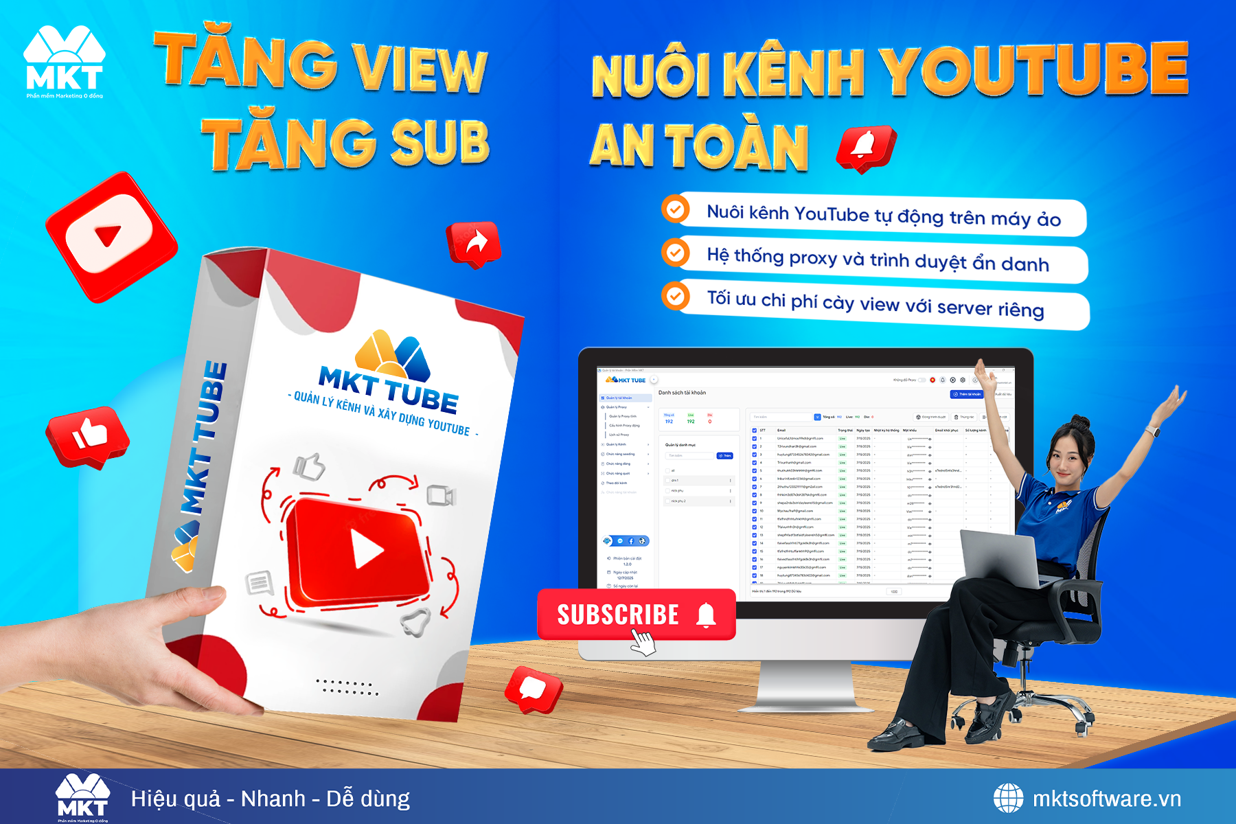 MKT Tube là phần mềm tự động hóa YouTube chuyên sâu, được thiết kế để giải quyết bài toán
