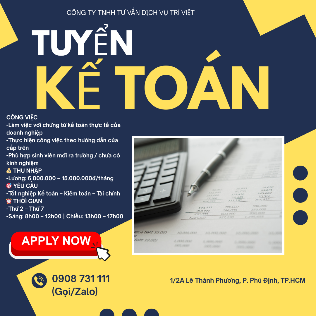 🔥 TUYỂN GẤP 10 NHÂN VIÊN KẾ TOÁN 🔥