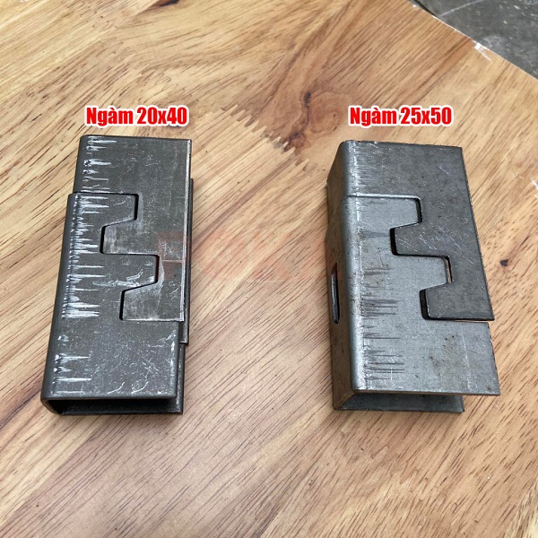 Ngàm âm dương 20x40mm và ngàm âm dương 25x50mm thường được làm từ sắt dày, có thể