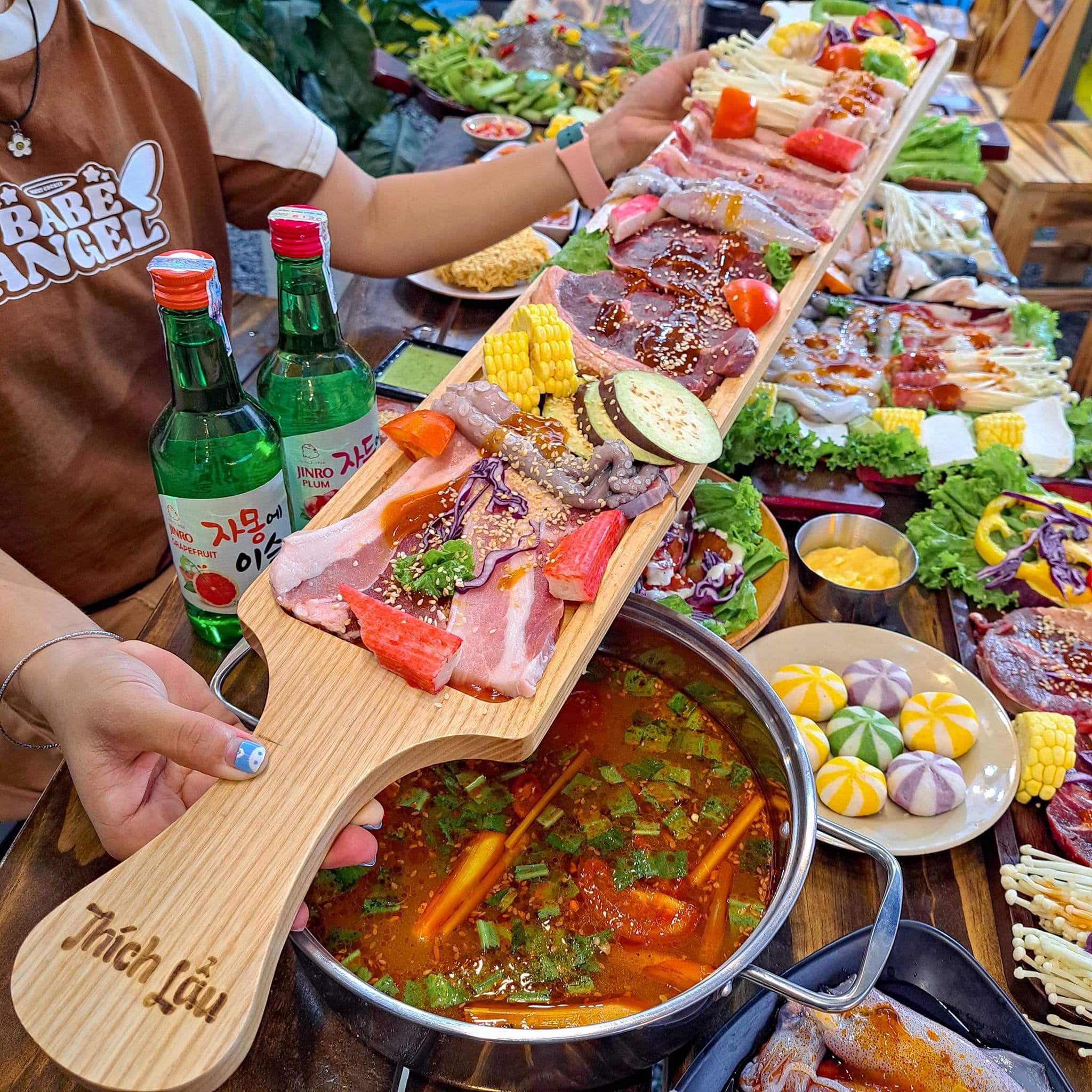 mình không thể bỏ qua, đó là Thích Lẩu. Quán này có không gian rộng rãi, menu đa dạng từ lẩu