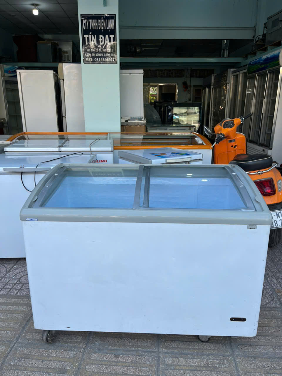 tình trạng: tủ hoạt động tốt, lạnh sâu, kính còn đẹp, phù hợp bán nước, kem, thực phẩm đông lạnh