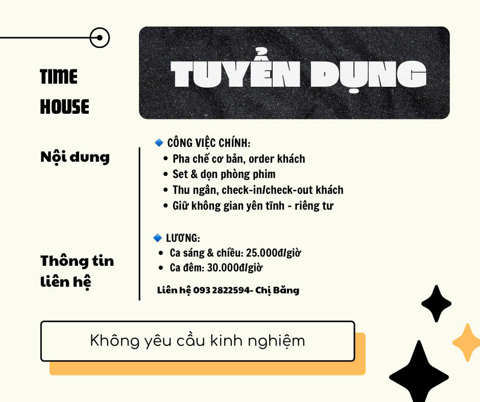 TIMEHOUSE TUYỂN NHÂN VIÊN CA – LÀM VIỆC 24/7