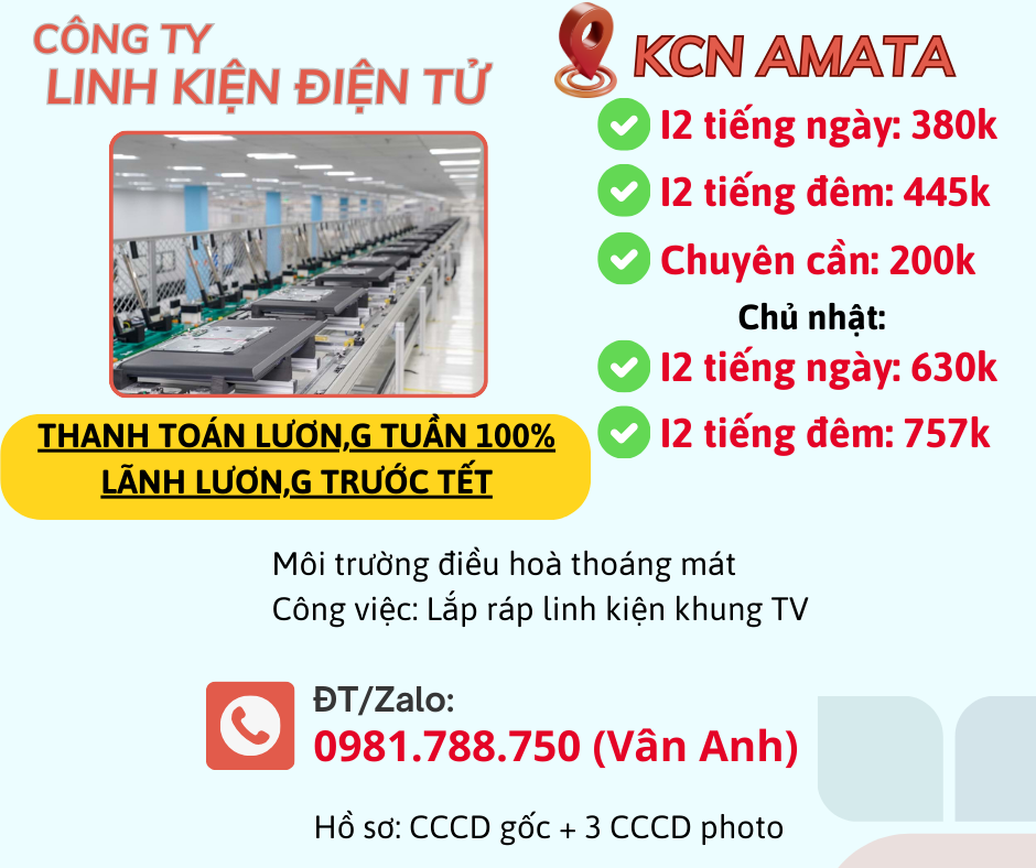 Tuyển lao động phổ thông nam, nữ làm việc tại KCN Amata