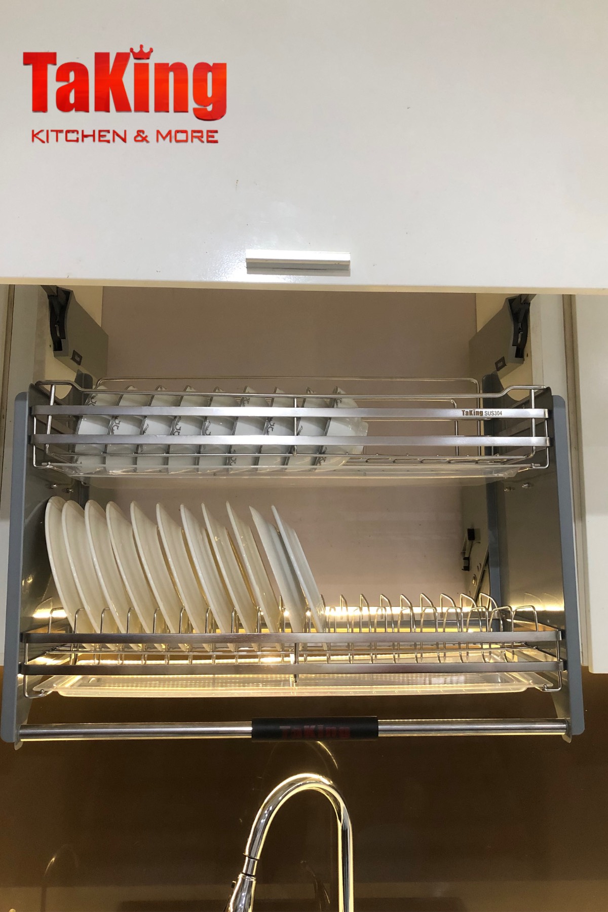 Kệ bát đĩa nâng hạ di động thông minh TaKing là phụ kiện bếp hiện đại, cao cấp dành cho tủ bếp