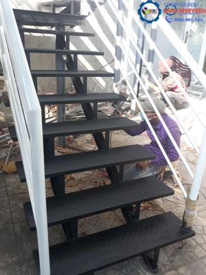 Bậc cầu thang ngoài trời bằng sắt gân 3.ly
