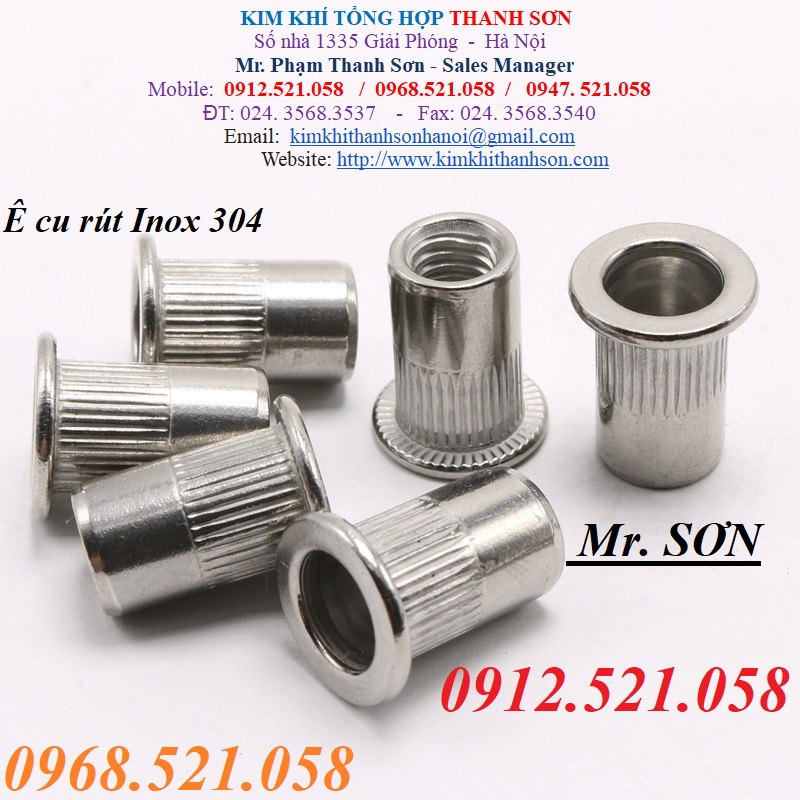 Tán rút, ốc rút, Ê cu rút M10,8,6,5,4,3 Hà Nội 0947521058 Vật tư cơ kim khí Thanh Sơn Thanh Trì