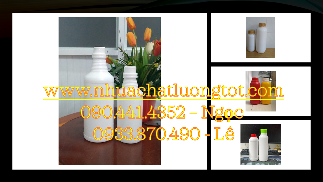 Chai nhựa đựng hoá chất của công ty có nhiều chủng loại : màu sắc, kích thước, kiểu dáng, dung
