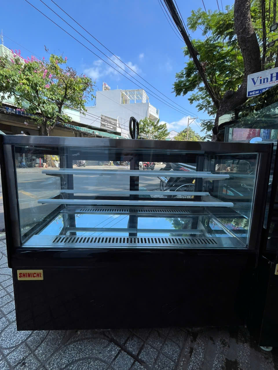 Thanh lý tủ mát trưng bày bánh kem để bàn - hiệu Shinichi kính vuông 3 tầng mới 90%
