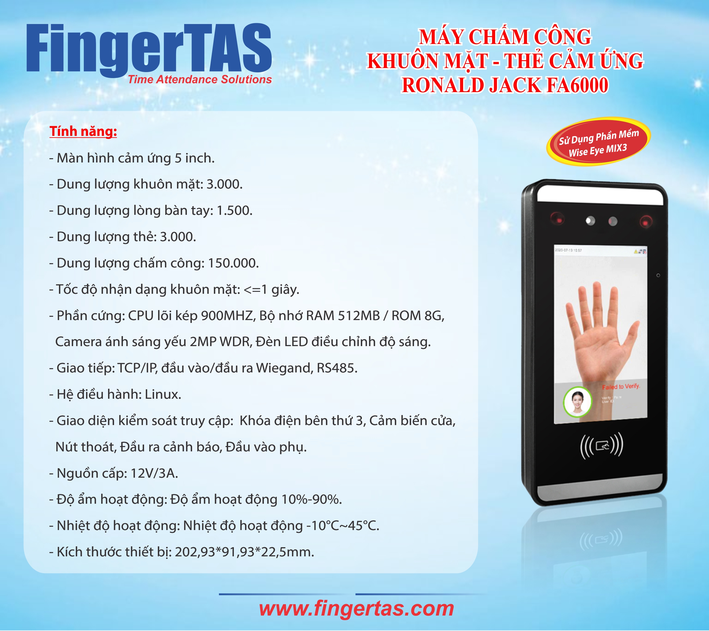 ♦ Dung lượng khuôn mặt: 3.000