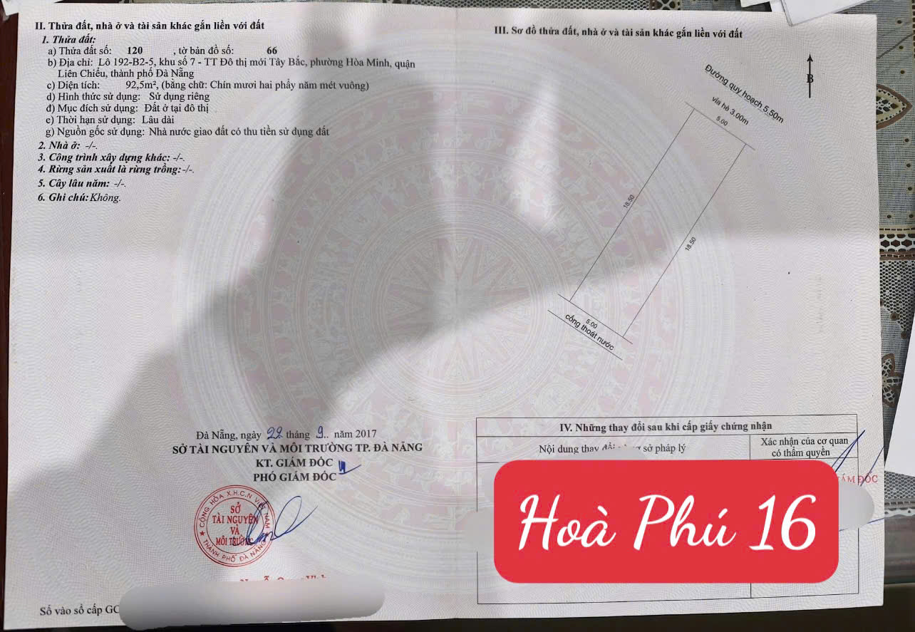 Bán đất 1 cặp đường Hòa Phú 16 - sát Ngã Tư Tô Hiệu với Hoà Phú 9P Hòa Khánh, TP Đà NẵngDiện tích: 185m2 ngang 10m Đường 5,5m vỉa hè 3m.Vị trí đẹp, sát Ngã Tư Tô Hiệu với Hoà Phú 9Xung quanh toàn nhà đẹp, tiện ích đầy đủ...Giá: 11 tỷ 100