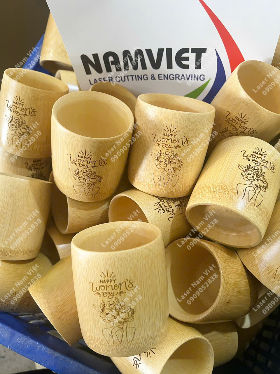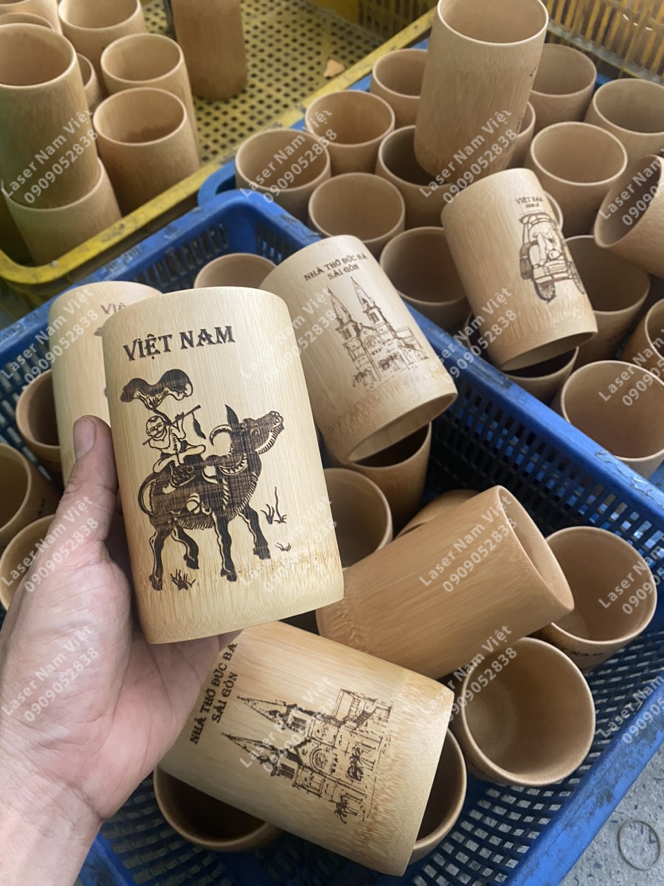 Bên cạnh đó, khách hàng còn có thể khắc laser logo, tên, hình ảnh hoặc thông điệp trên ly tre để