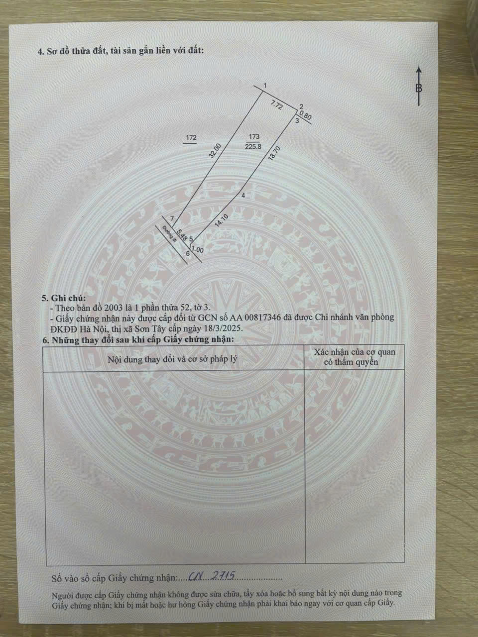 Cần bán 226m2 đất, có 100m2 đất thổ cư tại Thôn Yên Mỹ, xã Thanh Mỹ, thị xã Sơn Tây, Hà Nội (nay là thôn Yên Mỹ, Phường Tùng Thiện, tx Sơn Tây)- Đường Ô Tô 7 chỗ vào tận đất, dân cư đông đúc, gần chợ, trường học, gần vành đai 5……- Đất hướng Tây Nam, nở hậu, sẵn sổ giao dịch- Địa chỉ tại: Thôn Yên Mỹ, Xã Thanh Mỹ, Thị Xã Sơn Tây, Hà Nội