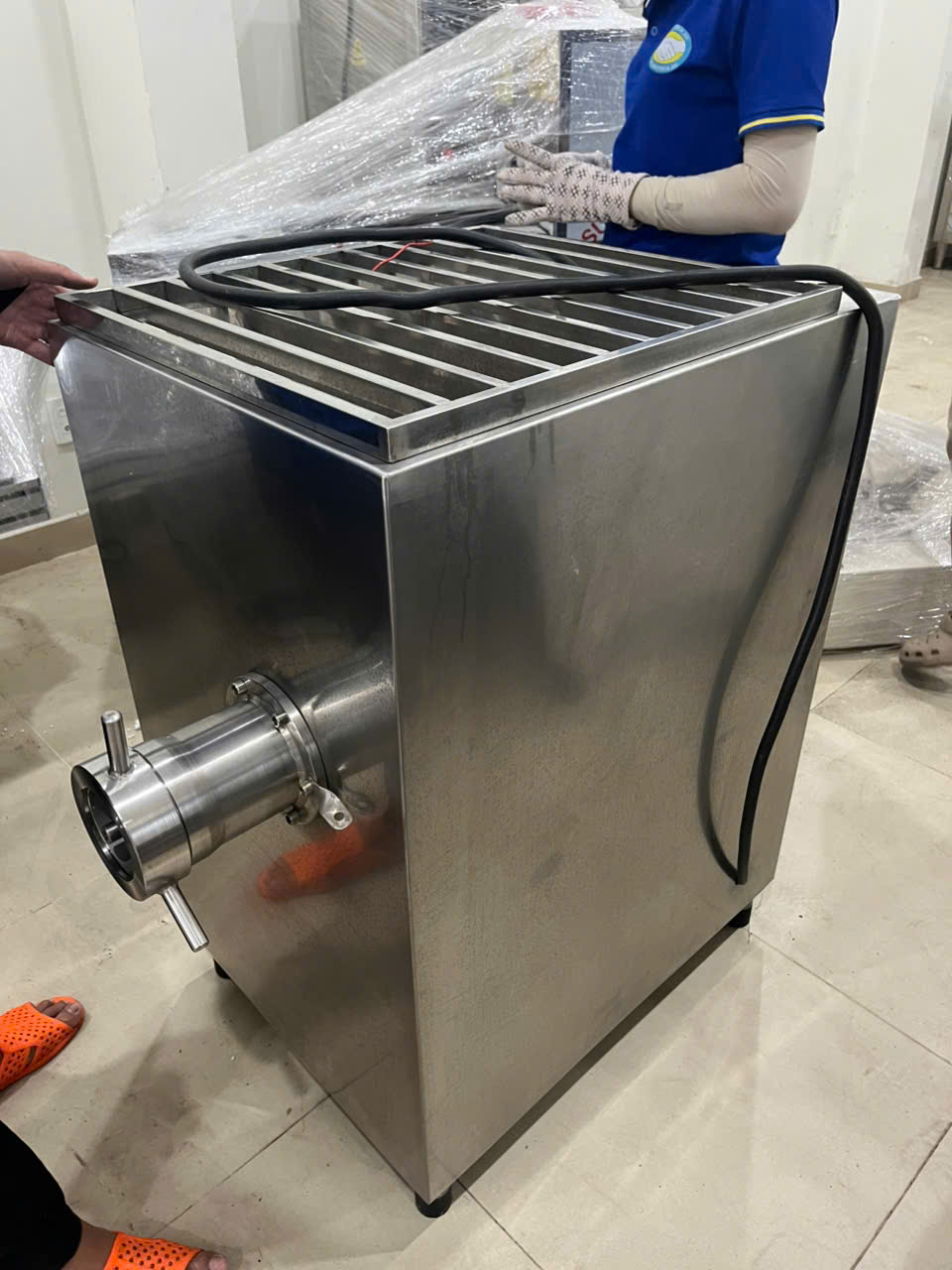 Thân máy và vít xoắn bằng thép không gỉ 304.