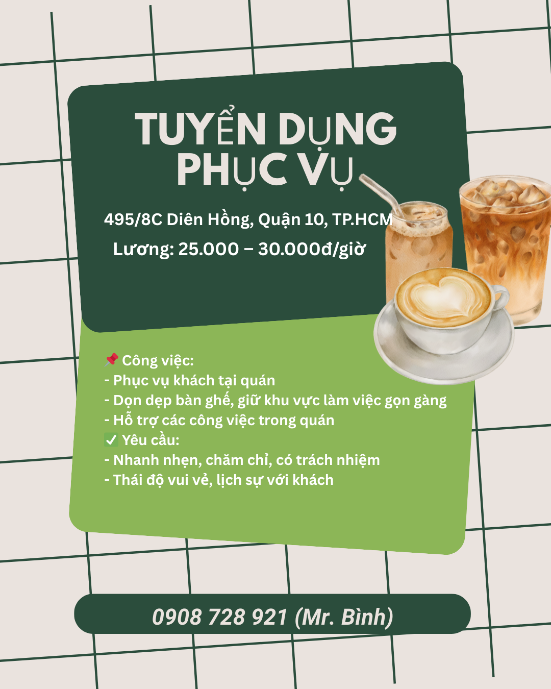 📢 Coffee Mo Mo TUYỂN NHÂN VIÊN PHỤC VỤ – QUẬN 10