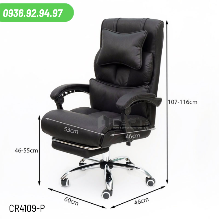 Ghế văn phòng nệm dày có gác chân nhập khẩu CR4109-P nội thất CAPTA