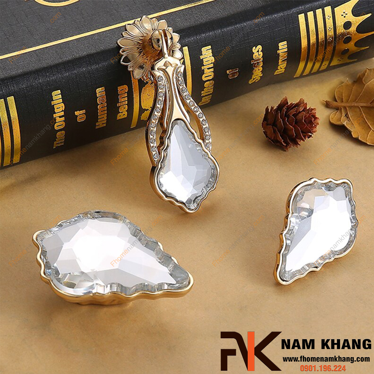 Tay nắm pha lê thường có cấu tạo gồm phần pha lê liên kết với đế kim loại bằng keo chuyên dụng