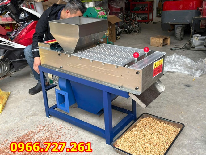 ra khỏi đậu phộng, phía dưới được gắn thêm 1 quạt thổi để thổi phần vỏ lụa đã được tách ra