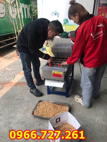 này, lớp vỏ lụa dùng tay chà nhẹ là đã tróc, bạn mới cho đậu phộng vào máy bóc vỏ đậu phộng và