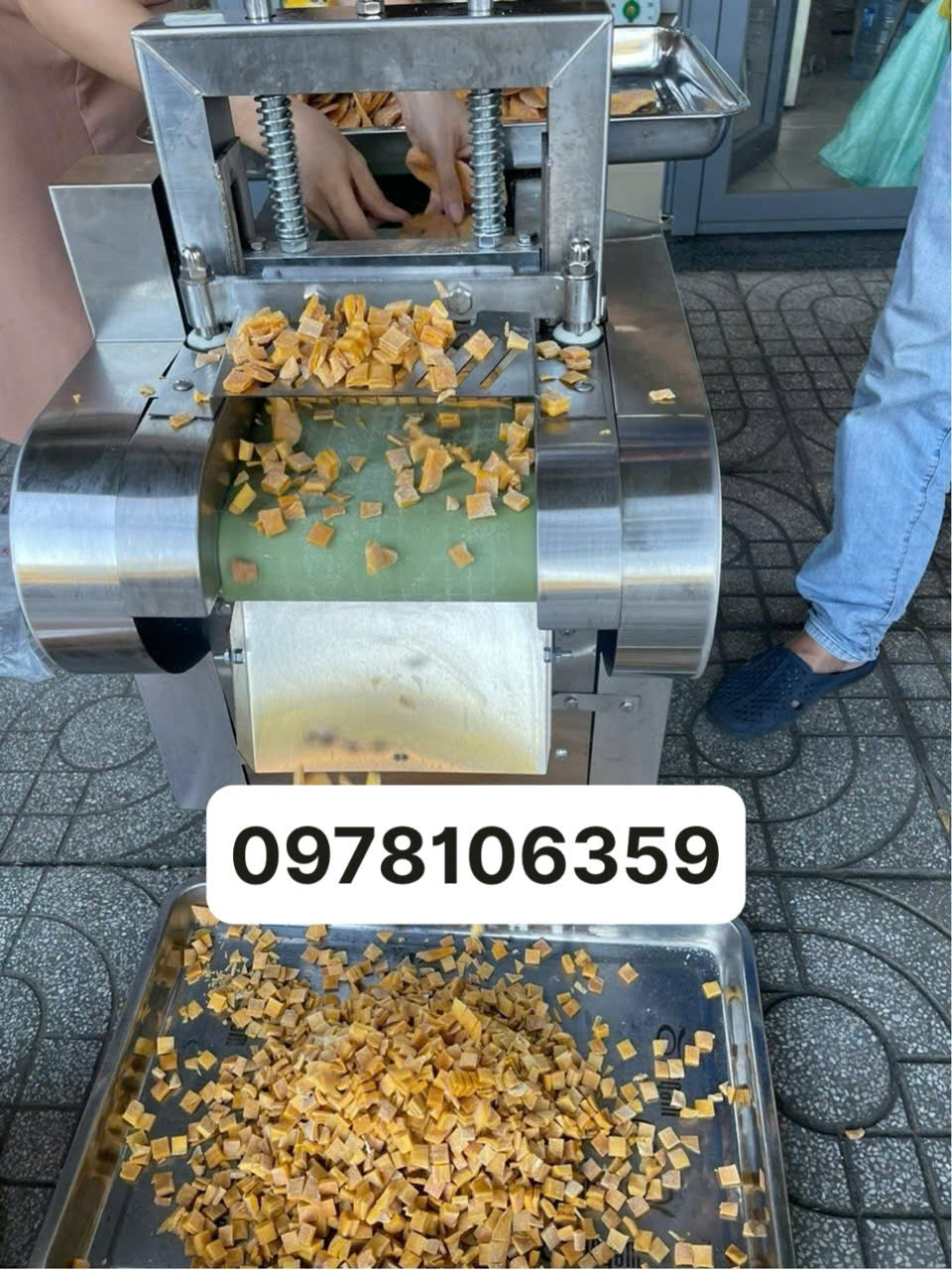 - Bằng cách thay các dao khác nhau, máy có thể cắt củ và thân(khoai tây, cà rốt, khoai lang, cà