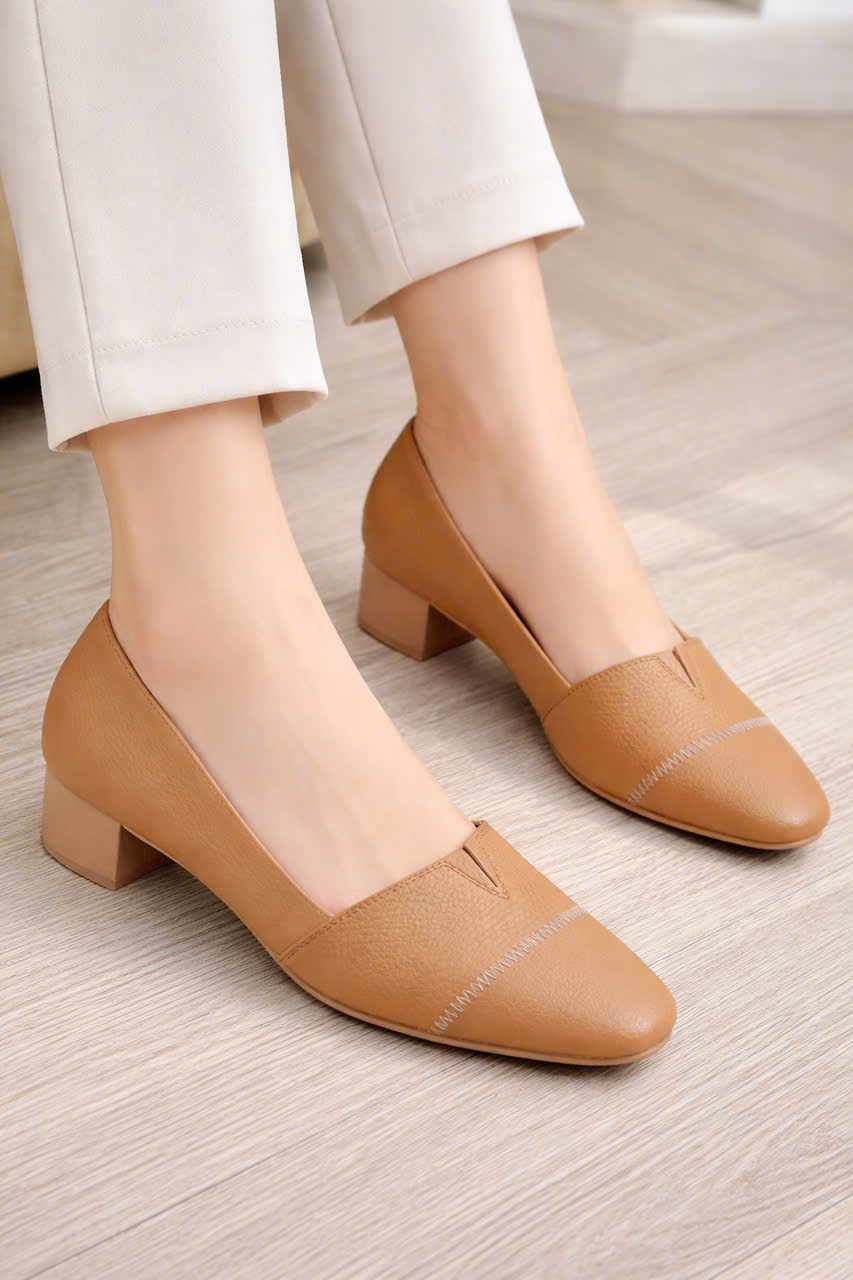 • Kiểu dáng: pump gót vuông thấp (đi êm, dễ di chuyển)