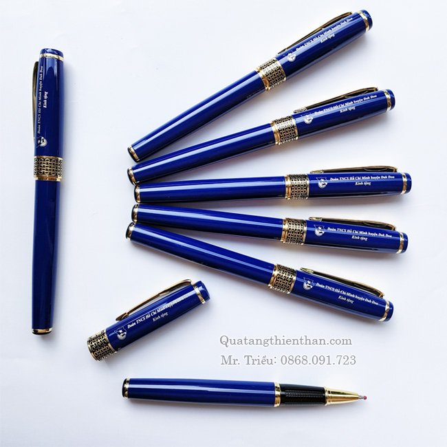 Cung cấp Bút bi kim loại màu xanh khắc laser logo sắc nét, chất liệu bền đẹp. Nhận đơn hàng số