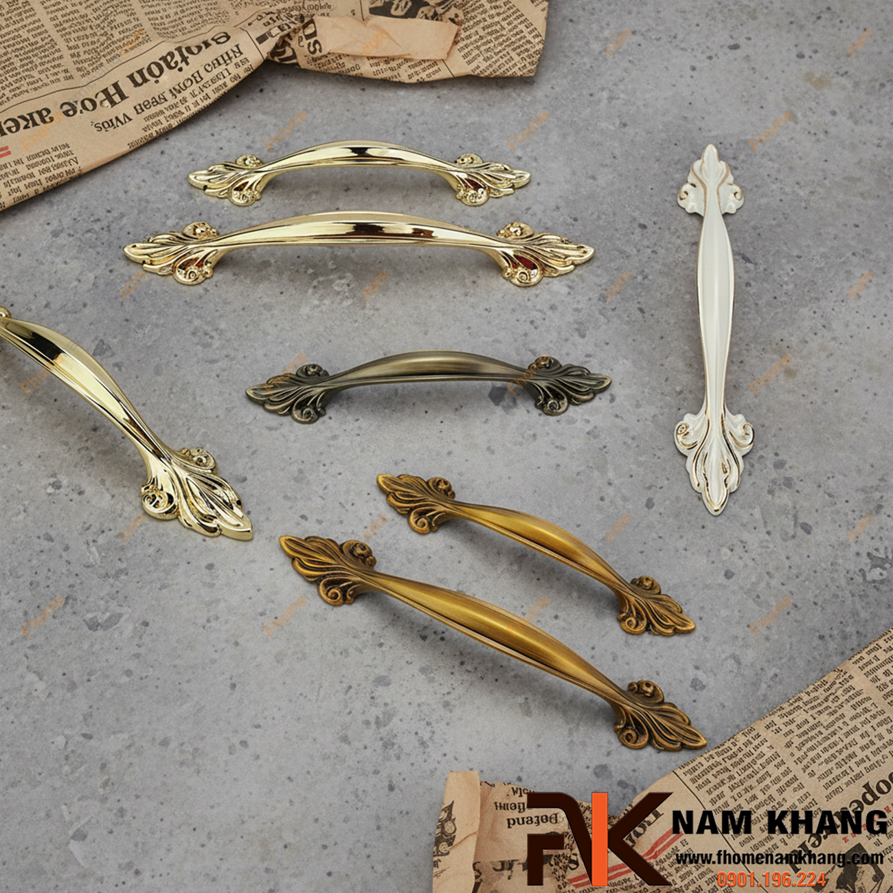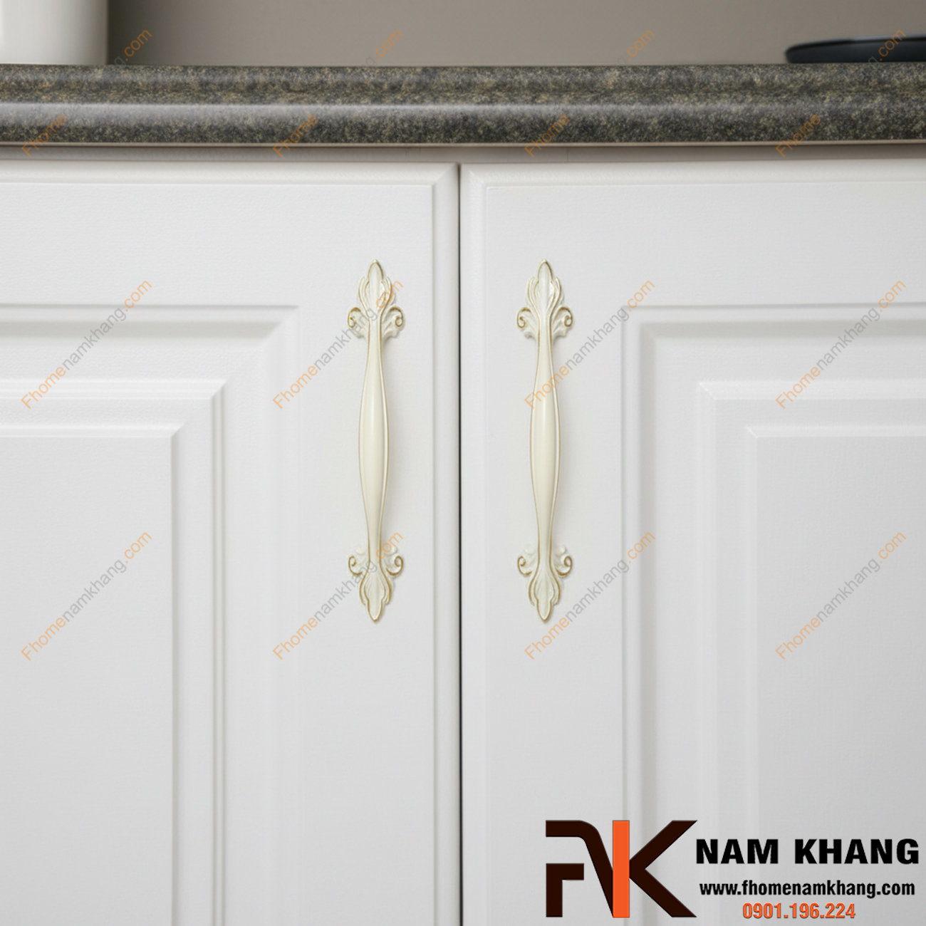 Tay nắm cửa tủ tân cổ điển #NK097 được thiết kế với những đường nét hoa văn uốn lượn tinh