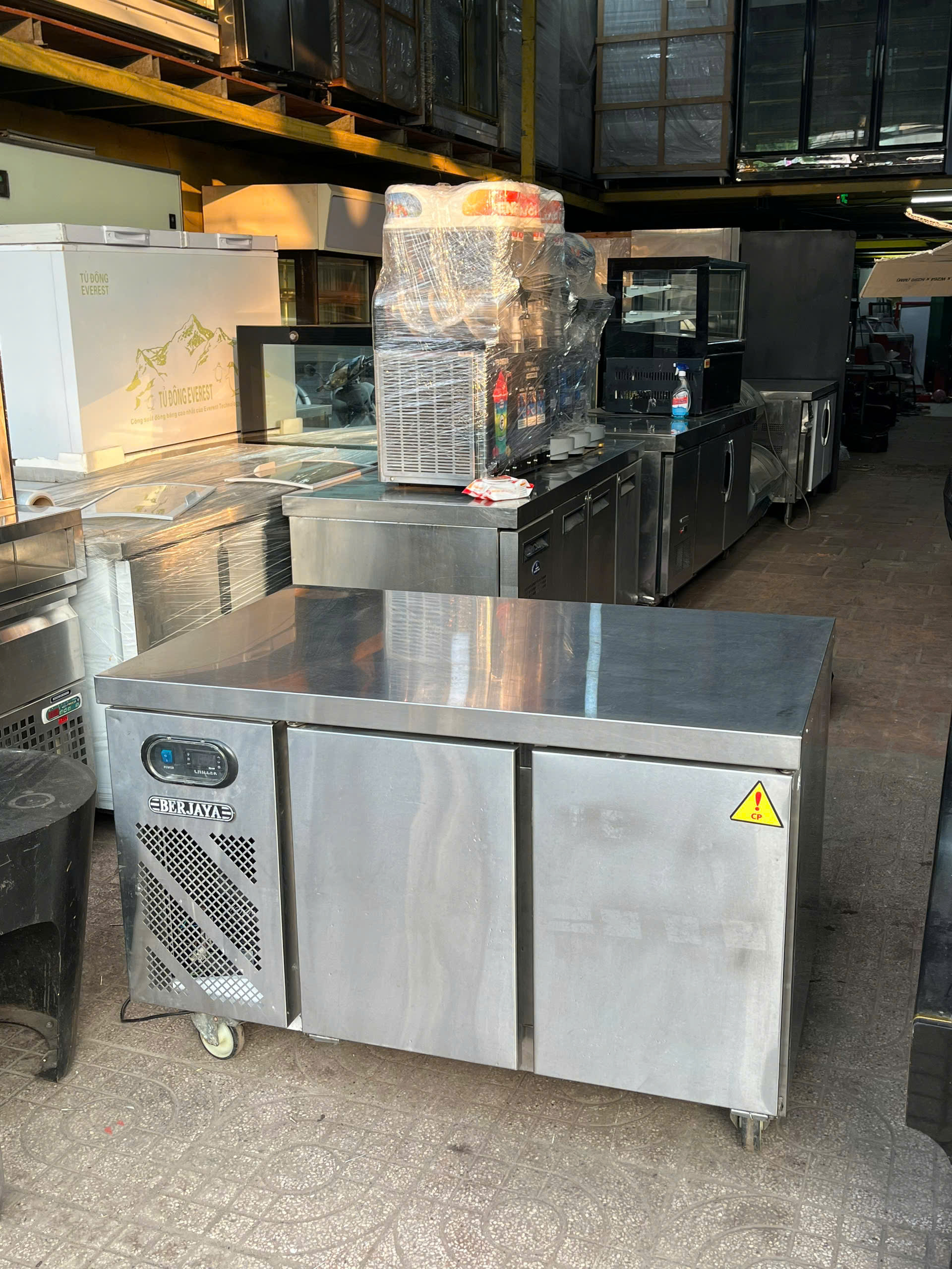 Cần thanh lý bàn mát inox thương hiệu Berjaya, hàng nhập Malaysia, chuyên dùng cho quán ăn,