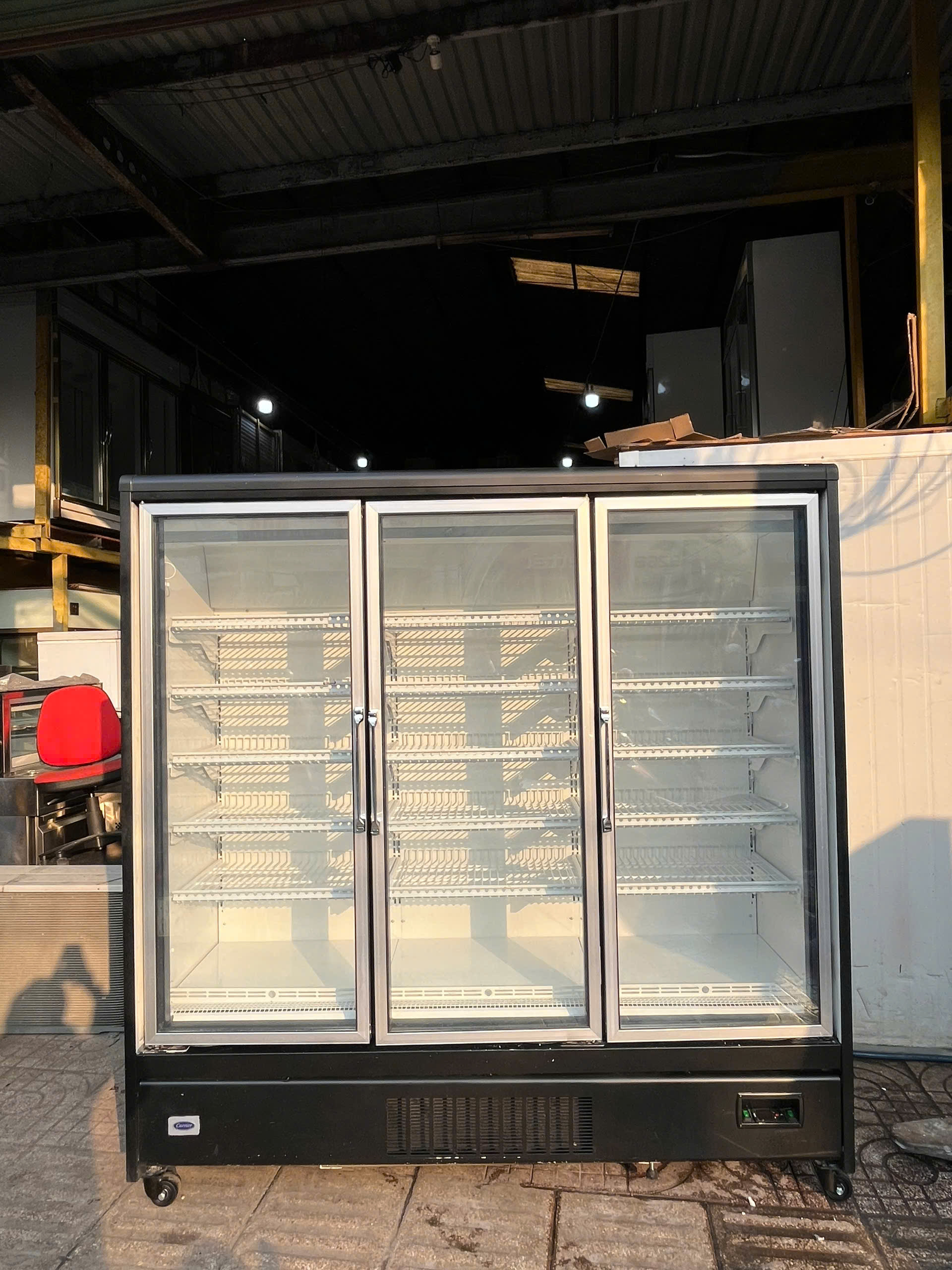 Thanh lý tủ mát 3 cửa kính Carrier cao cấp – dung tích lớn, trưng bày đẹp.