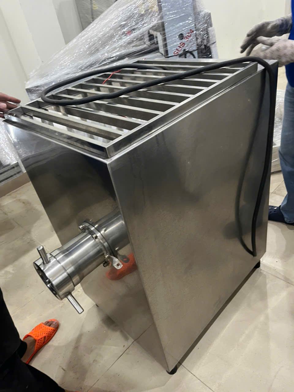 Thân máy và vít xoắn bằng thép không gỉ 304.
