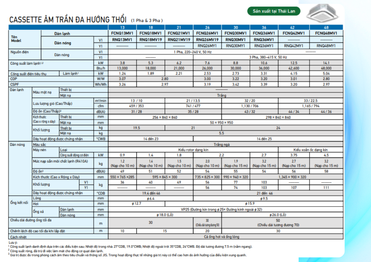 Tính năng Máy lạnh âm trần Daikin FCNQ42 - 5ngựa - 5hp - R410