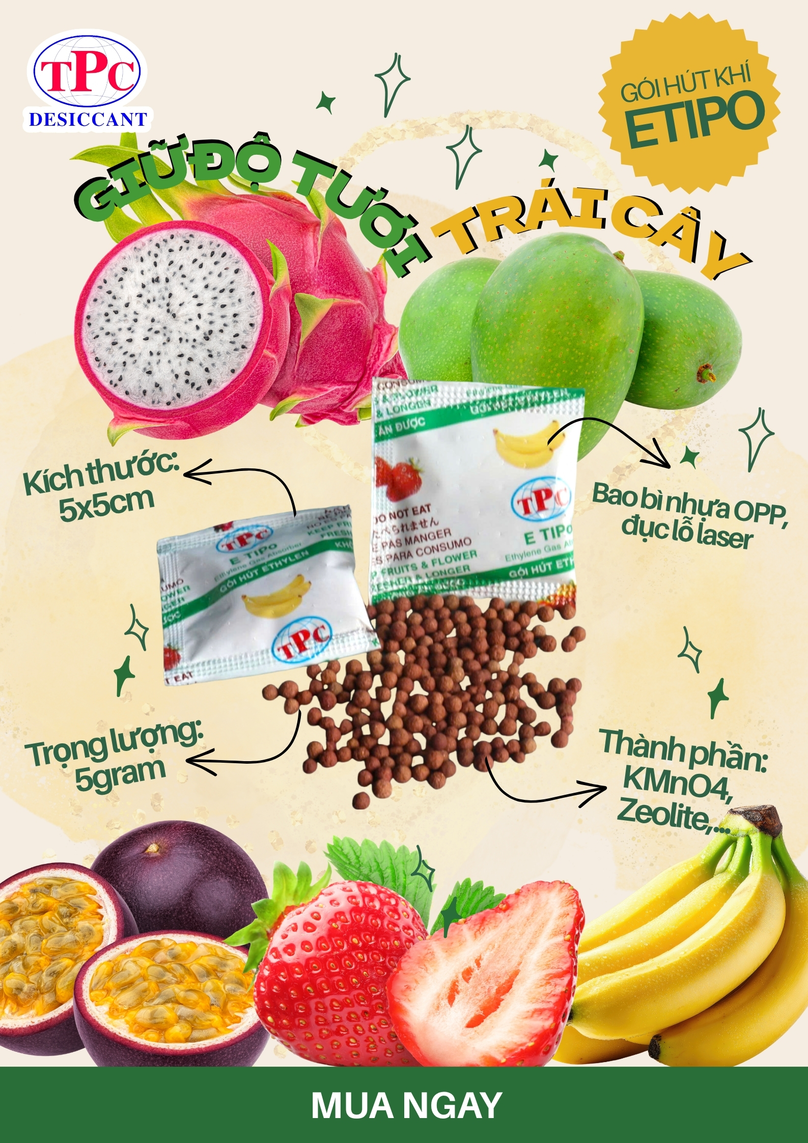 👉 Gói hút khí Ethylene Thịnh Phong giúp: