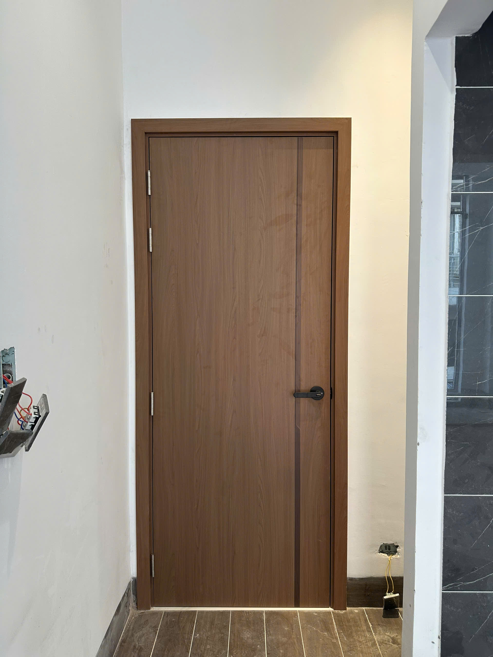 Mẫu Cửa gỗ carbon mẫu chỉ nhôm giá phát sinh 250,000đ/bộ. Kích thước (900×2180)mm :