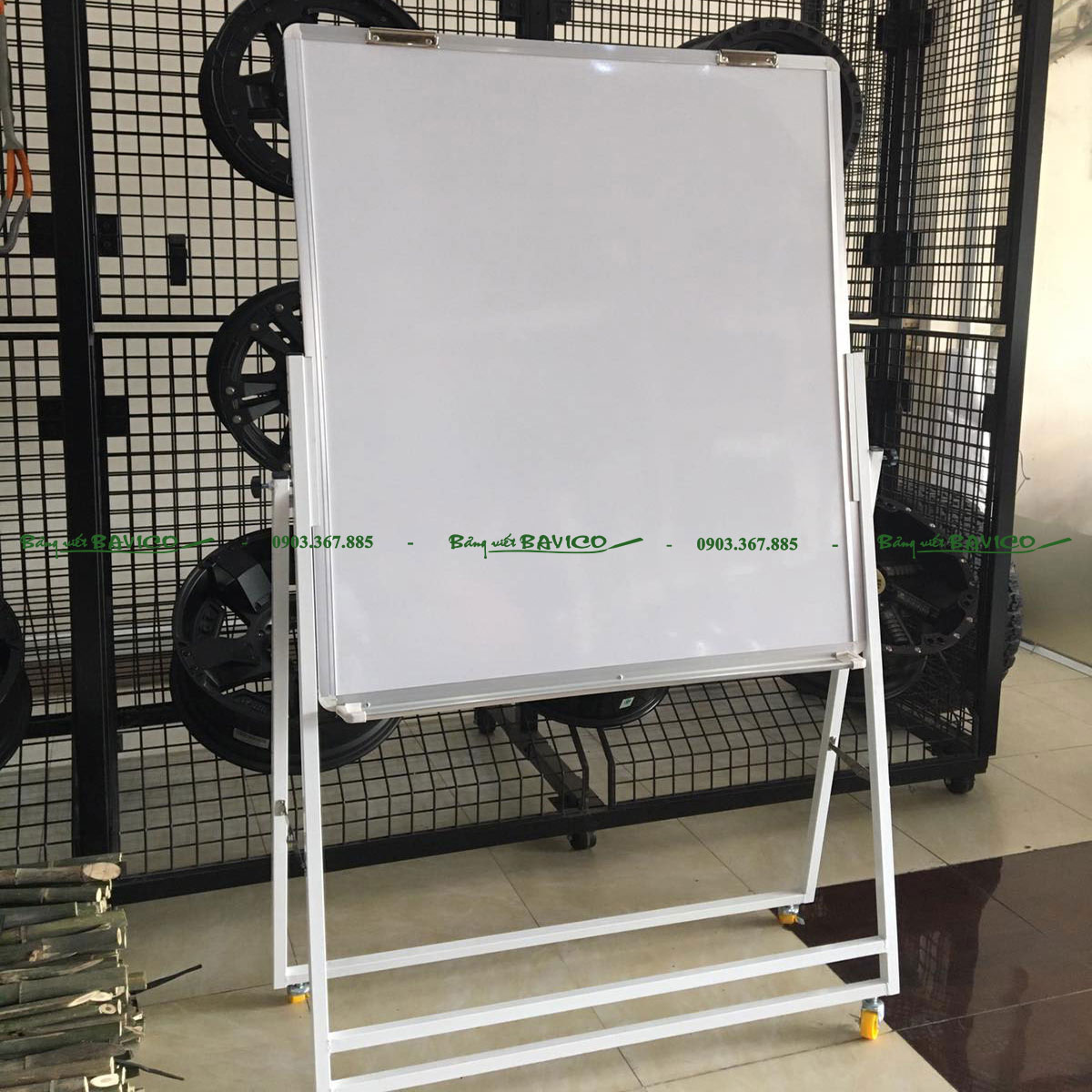 Chân bảng được thiết kế dạng chữ U có bánh xe, giúp người dùng di chuyển bảng dễ dàng giữa