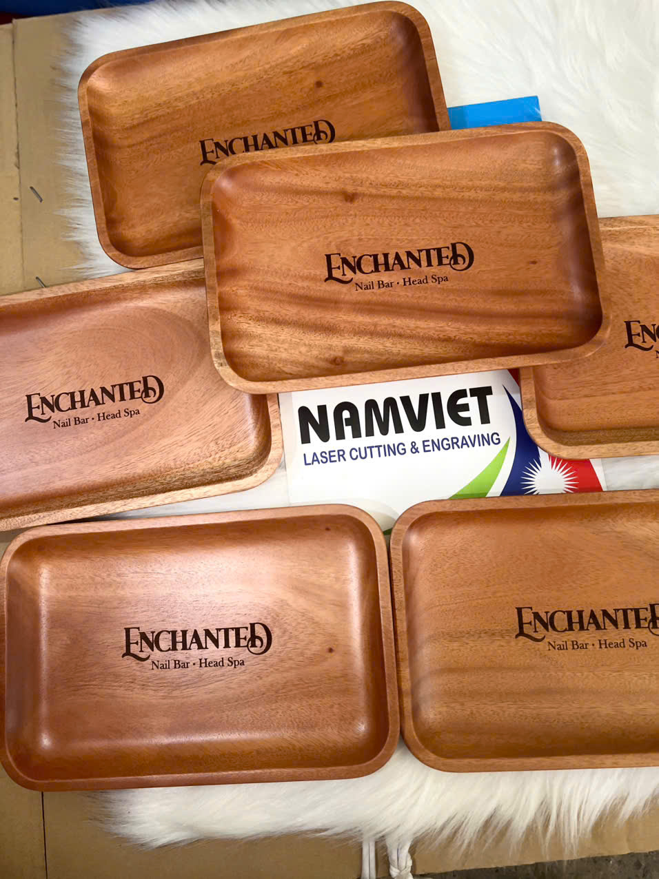 👉 Dịch vụ khắc laser logo trên mâm gỗ, khay gỗ giúp: