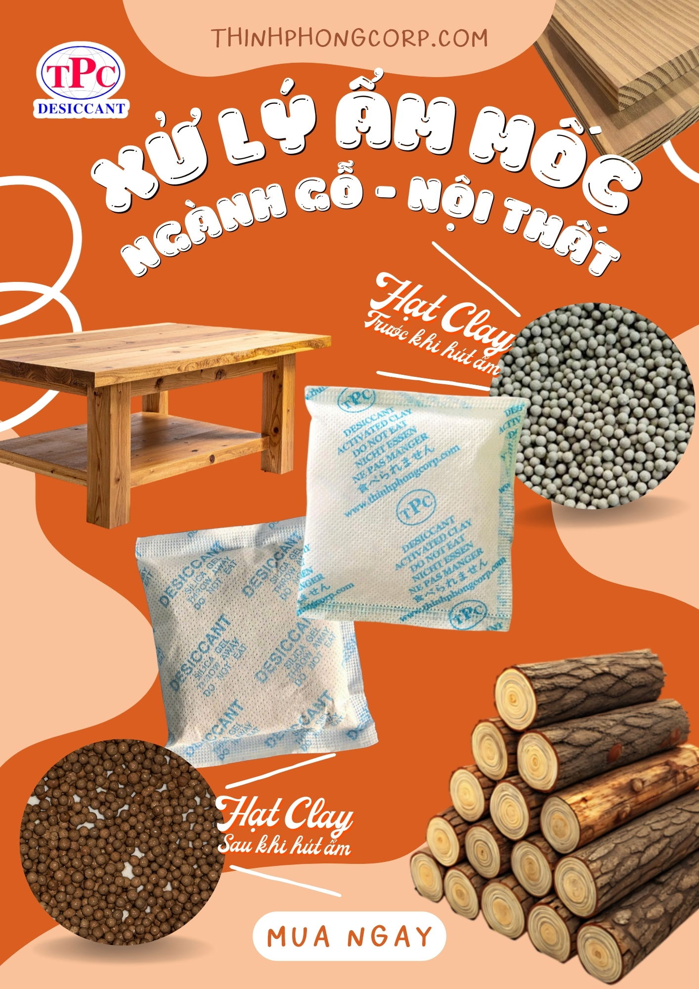 Gói hút ẩm ngành gỗ nội thất giúp duy trì môi trường khô ráo suốt hành trình.