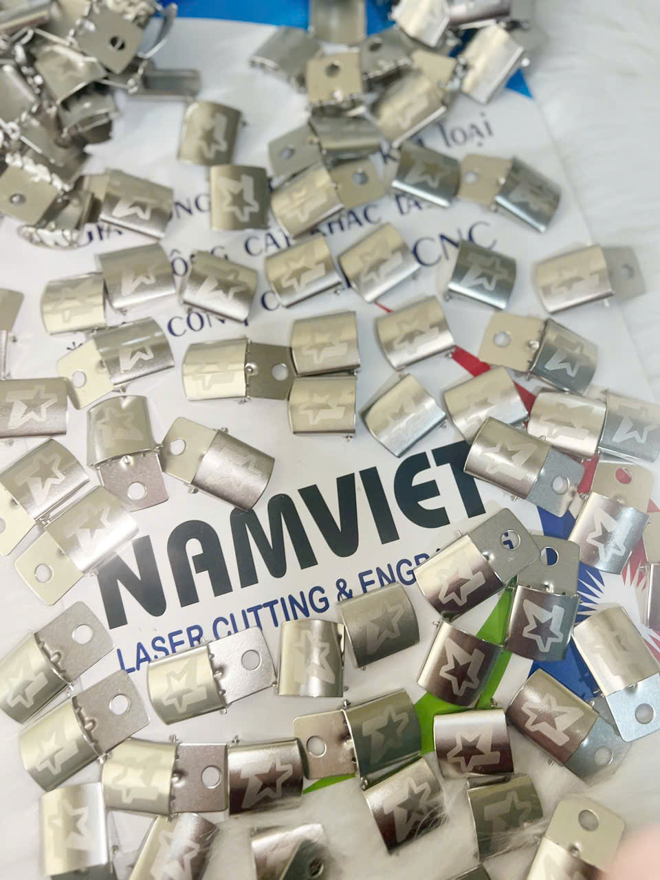 Laser Nam Việt nhận khắc laser logo lên khóa nón (đầu khóa, khóa tăng chỉnh nón) với nội dung