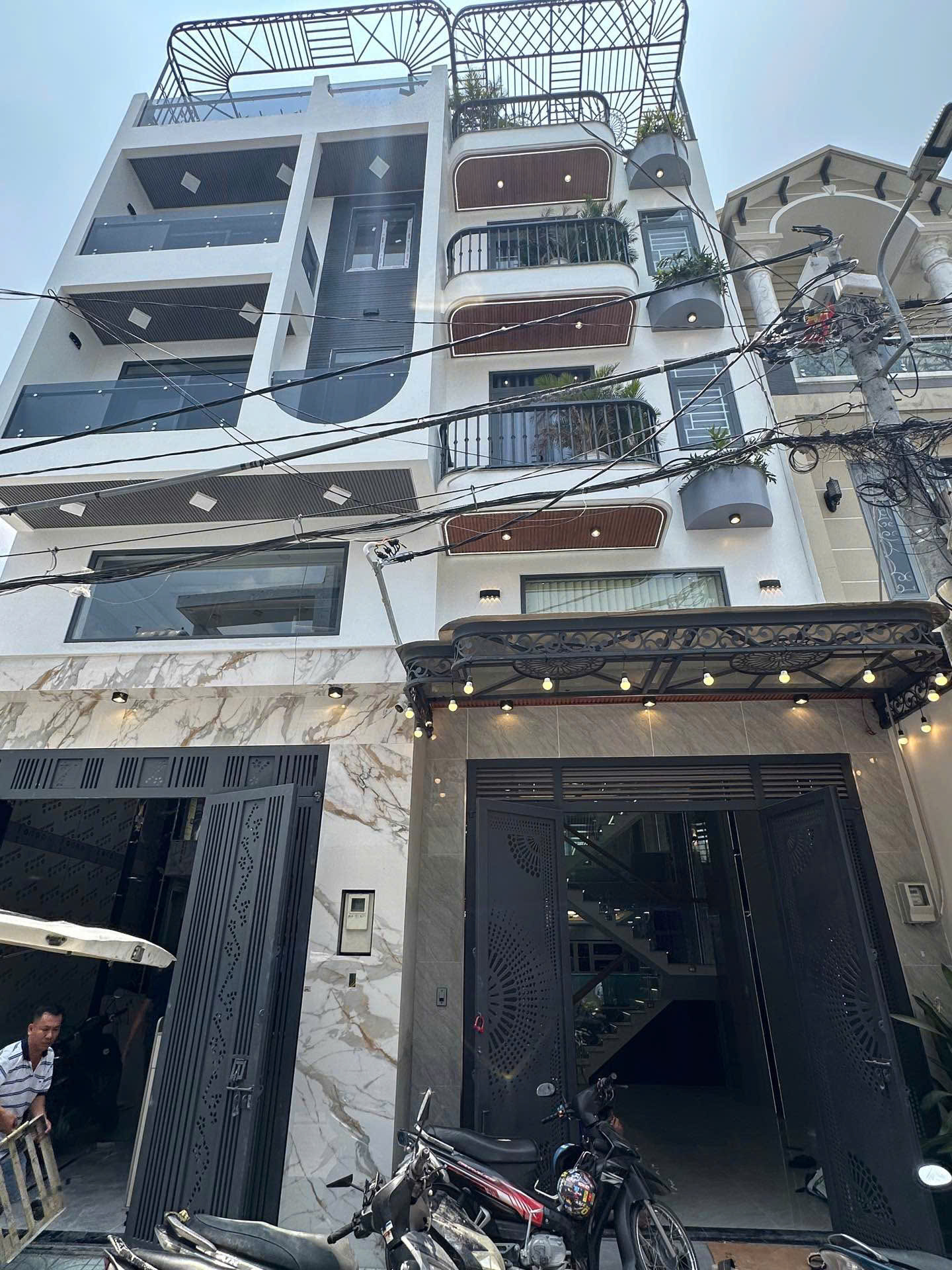 Nhà mới xây 100%, thiết kế hiện đại, sang trọng* Kết cấu: 4 tầng + sân thượng trước sau thoáng mát* Công năng đầy đủ:- 4 phòng ngủ- 5 WC- Phòng khách rộng (có lửng)- Bếp + phòng thờ riêng* Có giếng trời + ban công → cực kỳ thoáng & sáng