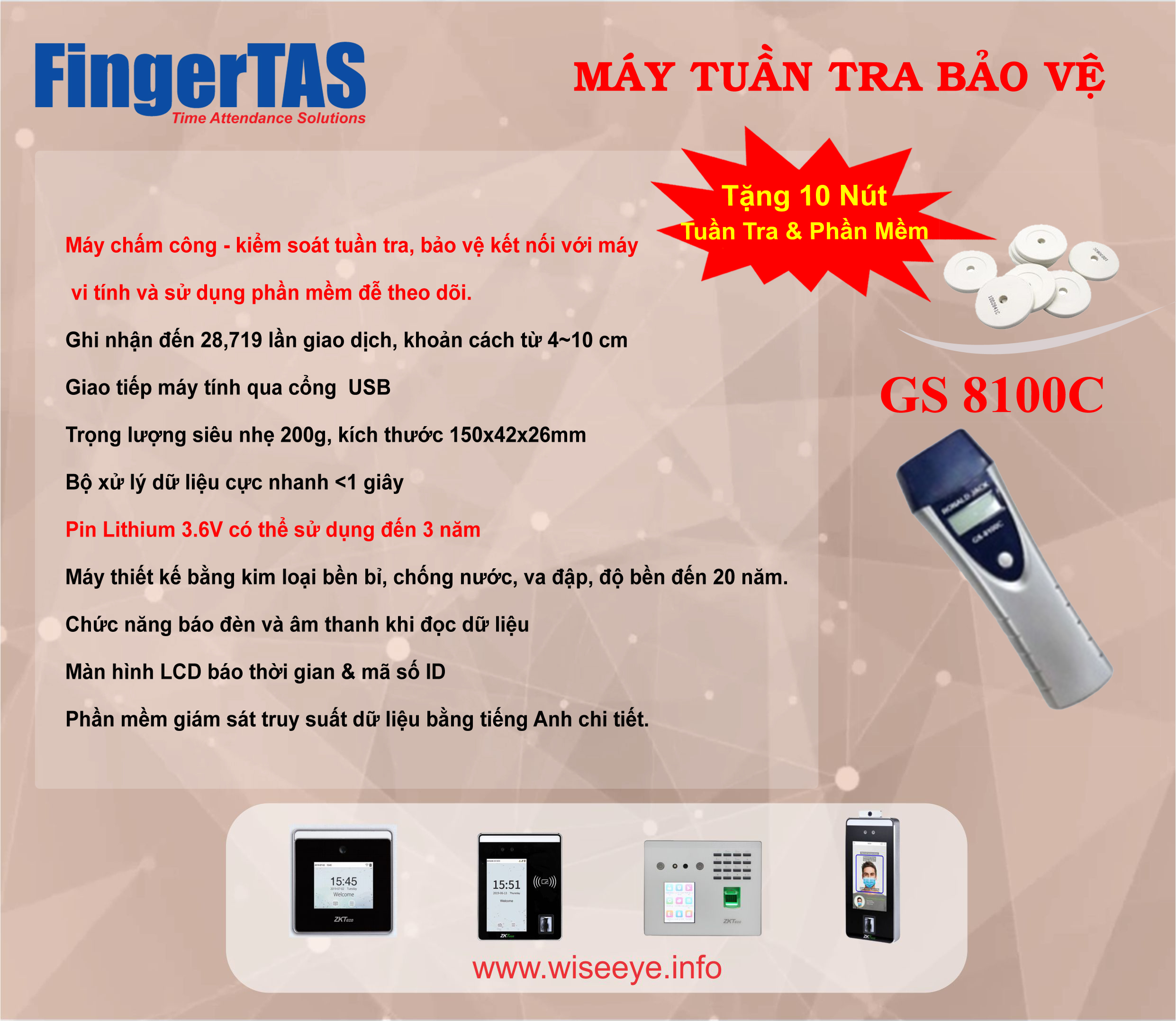 - Máy chấm công - kiểm soát tuần tra, bảo vệ kết nối với máy vi tính và sử dụng phần mềm đễ