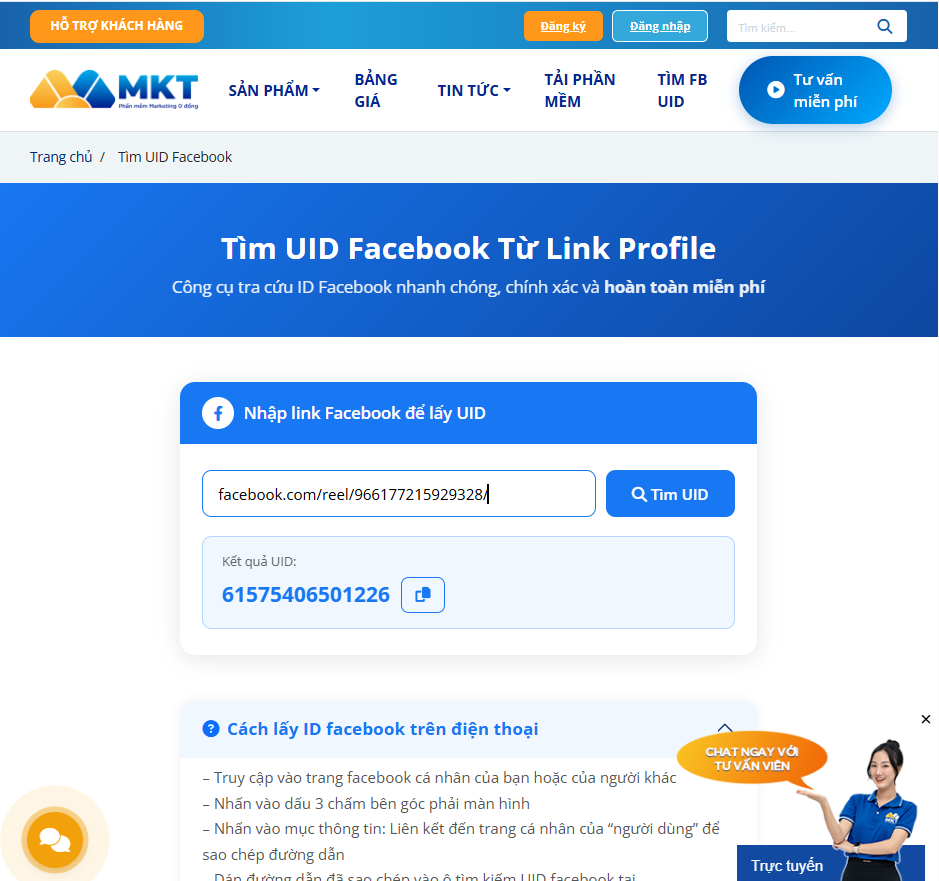 Bước 2: Truy cập công cụ lấy UID tại: https://mktsoftware.vn/fbuid