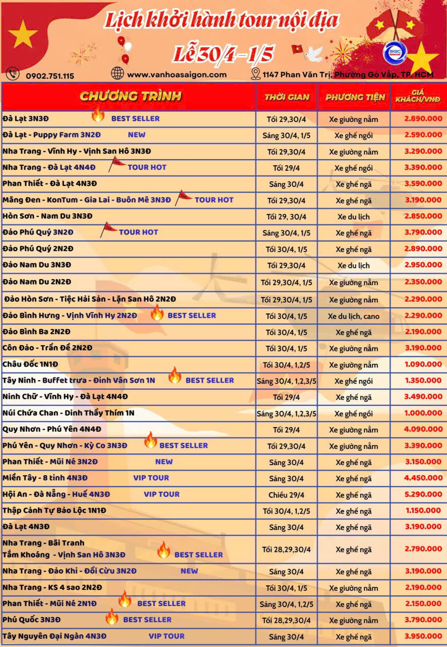 ✨ SGC TOURIST – ĐẠI TIỆC DU LỊCH LỄ 30/04 & 01/05 ✨