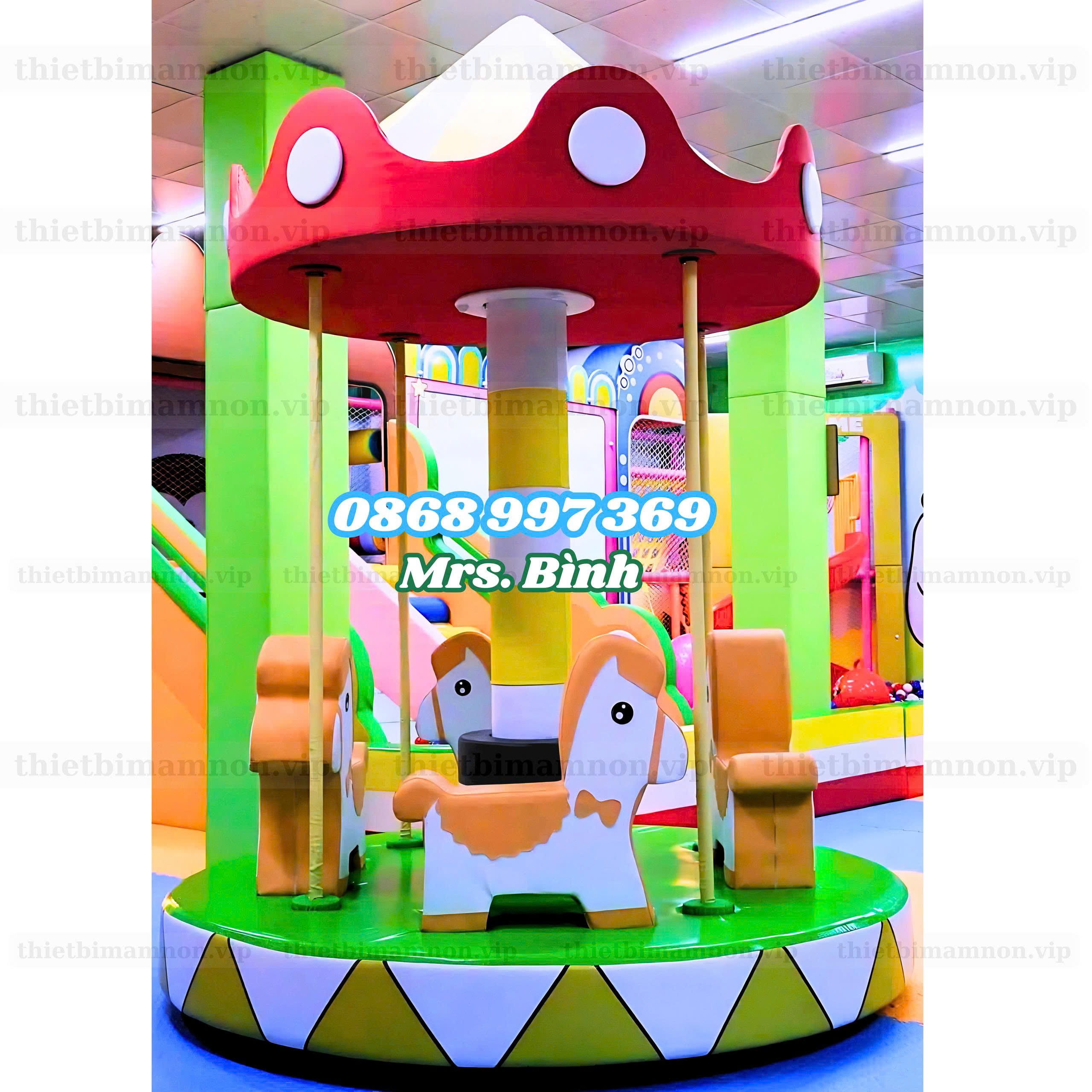 ✨ Đu quay ngựa thiết kế xinh xắn, màu sắc nổi bật – đặt vào là nâng tầm cả khu vui chơi.