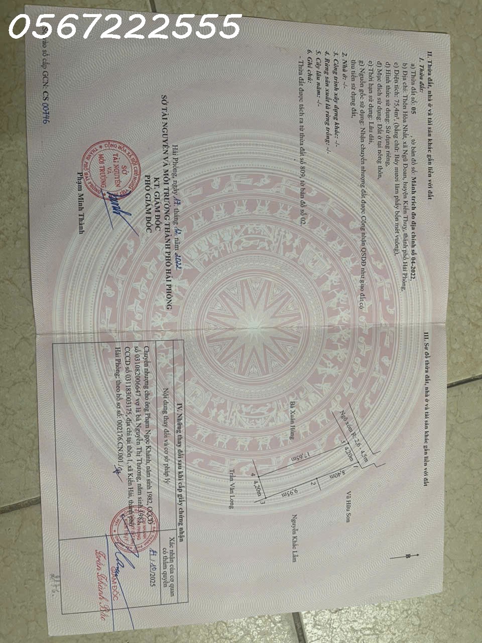 - ĐẤT NỀN HÒA NHẤT, NGŨ ĐOAN, KIẾN THỤY – CHỈ 9XX TRIỆU – CƠ HỘI AN CƯ & ĐẦU TƯ-ZALO: 0567 222 555- Chính chủ gửi bán lô đất vuông vắn tại thôn Hòa Nhất, xã Ngũ Đoan. Vị trí giao thông thuận ... tiện, không gian thoáng mát, giá cực kỳ "yêu thương" cho khách hàng tài chính dưới 1 tỷ.- Diện tích: 75,4m2 (Ngang 4,2m x Dài 17,65m)- Vị trí & Đặc điểm:    + Tọa lạc tại thôn Hòa Nhất, xã Ngũ Đoan, huyện Kiến Thụy, Hải Phòng.    + Đường ngõ rộng rãi, thông thoáng, ô tô di chuyển vào tận nơi dễ dàng.    + Khu dân cư hiện hữu, hiền hòa, an ninh đảm bảo. Không khí trong lành, phù hợp xây nhà ở định cư lâu dài.- Tiện ích: Gần các trường học các cấp xã Ngũ Đoan, chợ dân sinh và trung tâm hành chính xã, thuận tiện cho sinh hoạt hàng ngày.- Pháp lý: Bìa đỏ chính chủ (Thửa 491, tờ bản đồ 09), pháp lý minh bạch, không tranh chấp, sang tên nhanh gọn.- Giá bán: 9xx triệu (Mức giá cực tốt để sở hữu đất nền Kiến Thụy thời điểm này).- Quý khách quan tâm vui lòng liên hệ ngay để xem đất thực tế và chốt giá.- NHÀ ĐẤT ANH MINH 782 Phạm Văn Đồng, Dương Kinh, Hải Phòng- Trọng Điểm: Dương Kinh • Đồ Sơn • Kiến Thụy- SĐT/ZALO: 0567 222 555- Thông tin mang tính tham khảo tại thời điểm đăng. Xin vui lòng kiểm tra thực tế.- #batdongshankienthuy #ngudoan #hoanhat #datnenhaiphong #dautubds #nhadatanhminh