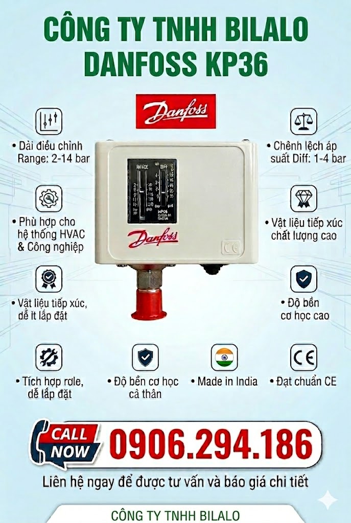 Công tắc áp suất Danfoss KP36 là một công tắc áp suất dùng để giám sát, điều khiển hoặc báo