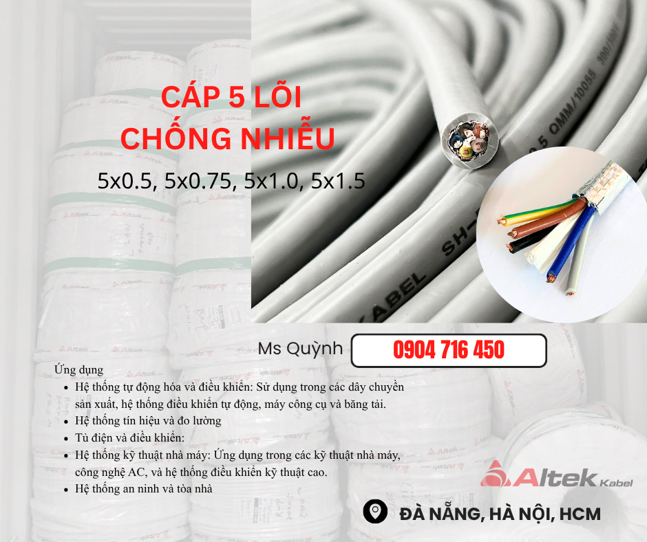 Cáp điều khiển 5 lõi chống nhiễu Altek Kabel