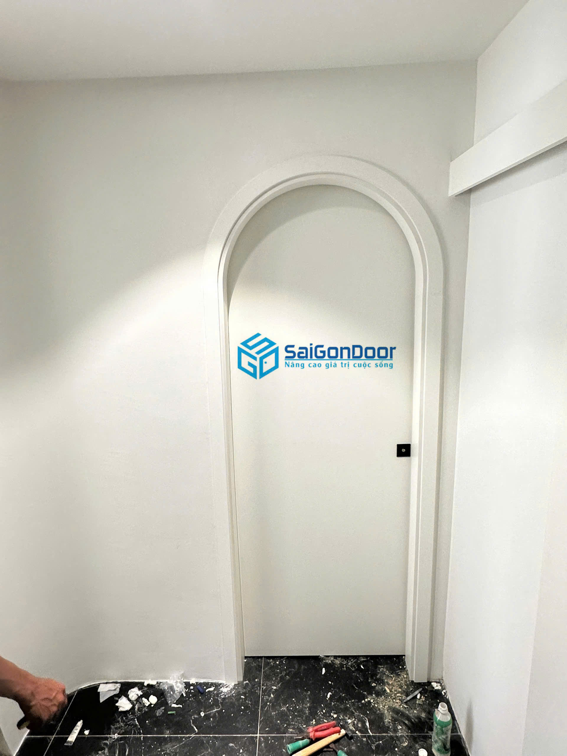 Tiếp tục bàn giao thêm một công trình với mẫu cửa lùa MDF vòm cong – thiết kế độc đáo, mang