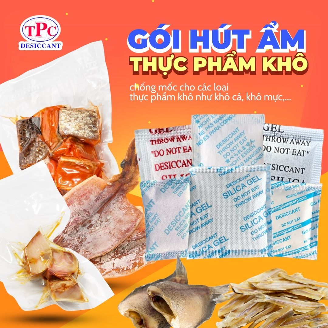 Gói hút ẩm Silicagel giúp hỗ trợ giữ môi trường bao bì khô ráo và ổn định hơn.